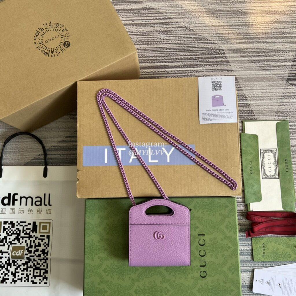 Top Quality Version:MYLLVV » Gucci Purple Leather GG Marmont Top Handle Card Case Wallet 701074
