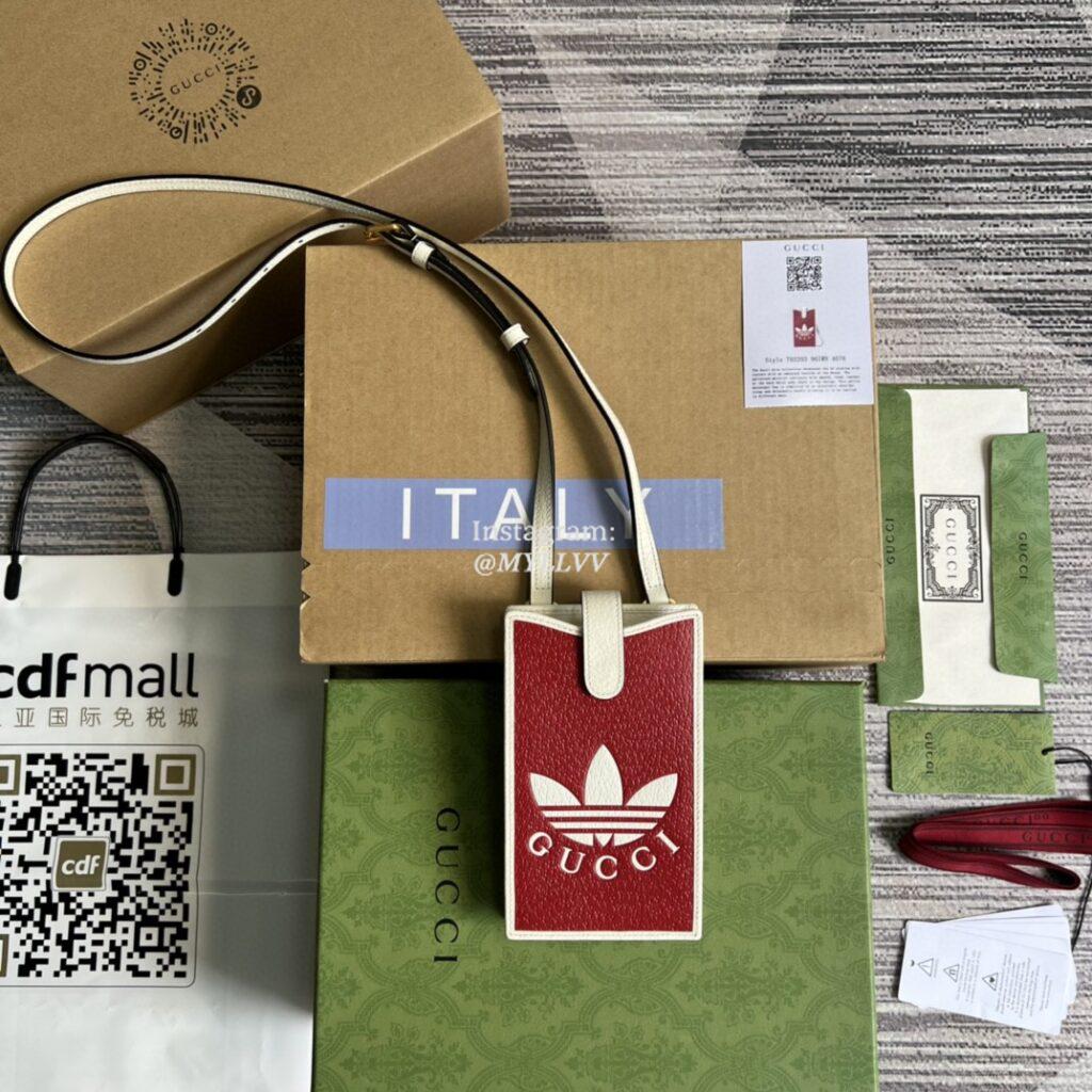 Top Quality Version:MYLLVV » Gucci Red And White Leather Adidas x Gucci Phone Case 702203