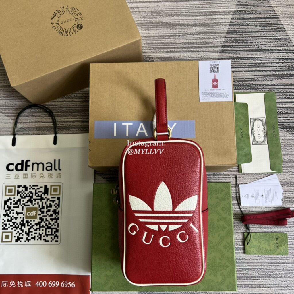 Top Quality Version:MYLLVV » Gucci Red Leather Gucci Adidas x Gucci Mini Top Handle Bag 702387