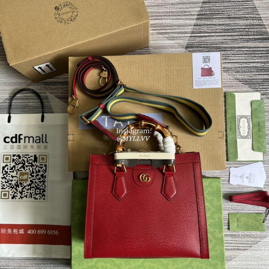 Top Quality Version:MYLLVV » Gucci Red Leather Gucci Diana Small Tote Bag 702721