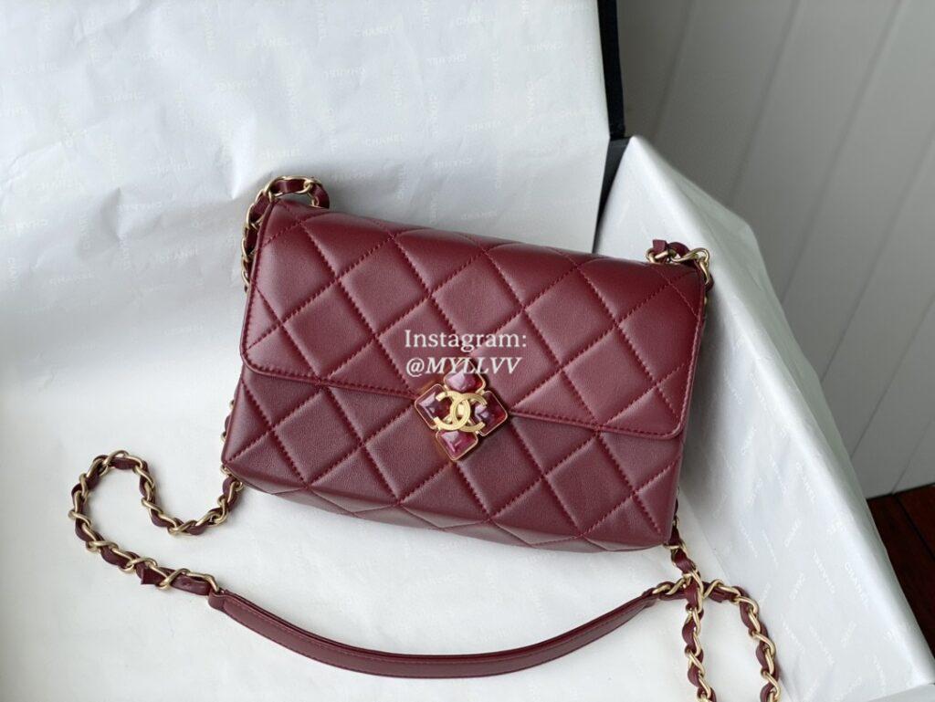 A new introduction to the GG Marmont line for Cruise 2019, the mini GG Marmont top handle bag has a softly structured shape and an oversized flap closure with Double G hardware. Equipped with a leather top handle and chain shoulder strap, made in matelassé chevron leather with a heart on the back.