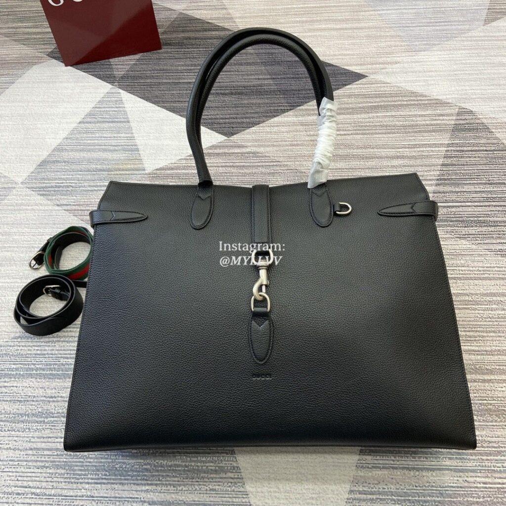 Gucci has launched a new tote bag collection, showcasing elegant charm and refined style. This bag is crafted with exquisite natural grain grey soft leather. This handbag can easily accommodate daily essentials and is suitable for various occasions. It is equipped with a top handle, a shoulder strap, and an iconic hook and loop.