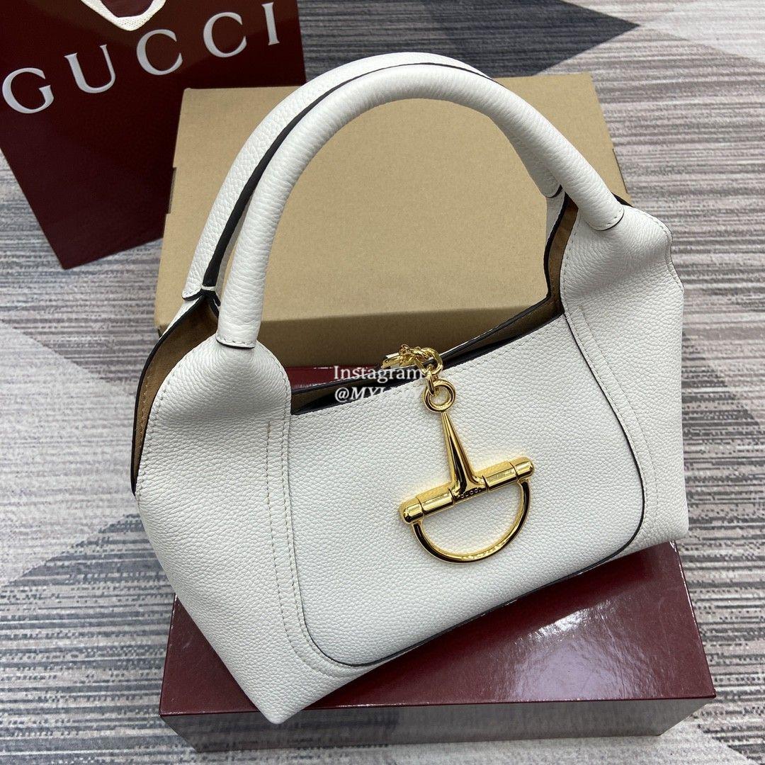 This brand new Gucci Softbit shoulder bag features an oversized half saddle buckle design, reinterpreting the brand’s classic accessories. The casual silhouette is paired with a magnetic buckle design, crafted with rich texture and soft grain cowhide leather, combining beauty and practical functionality. There are two sizes to choose from.