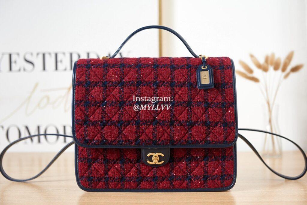 One side uses red grain cowhide leather, and the other side uses beige and dark brown GG canvas