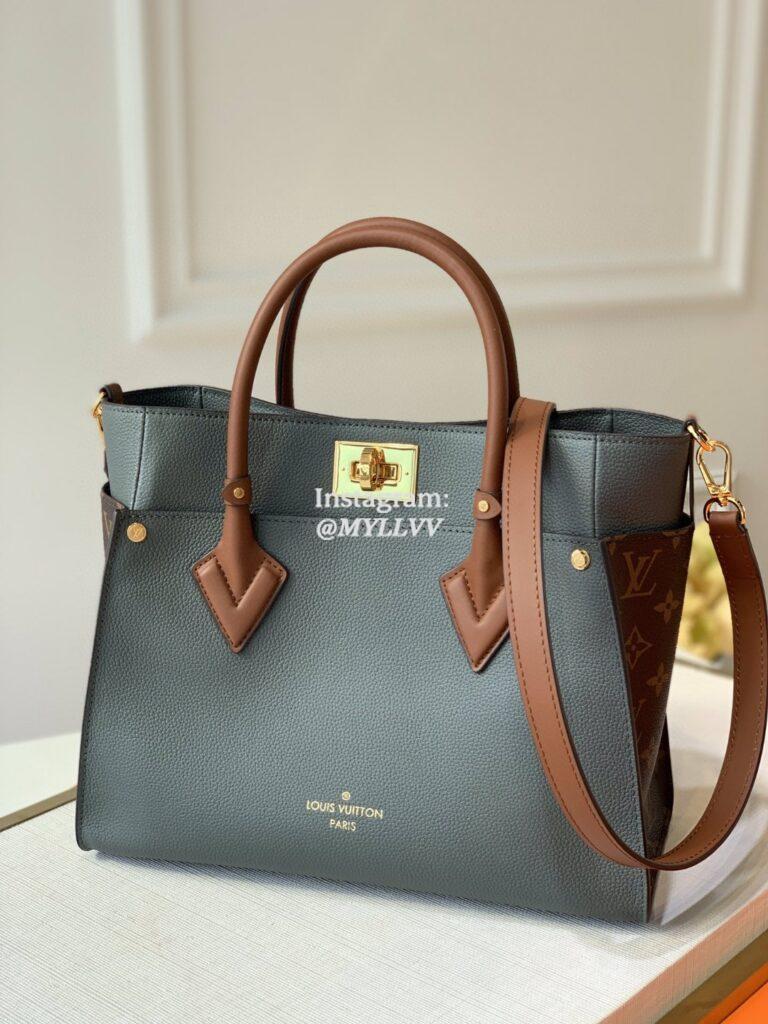 One side uses Gucci light blue grain leather, and the other side uses beige and dark brown GG canvas