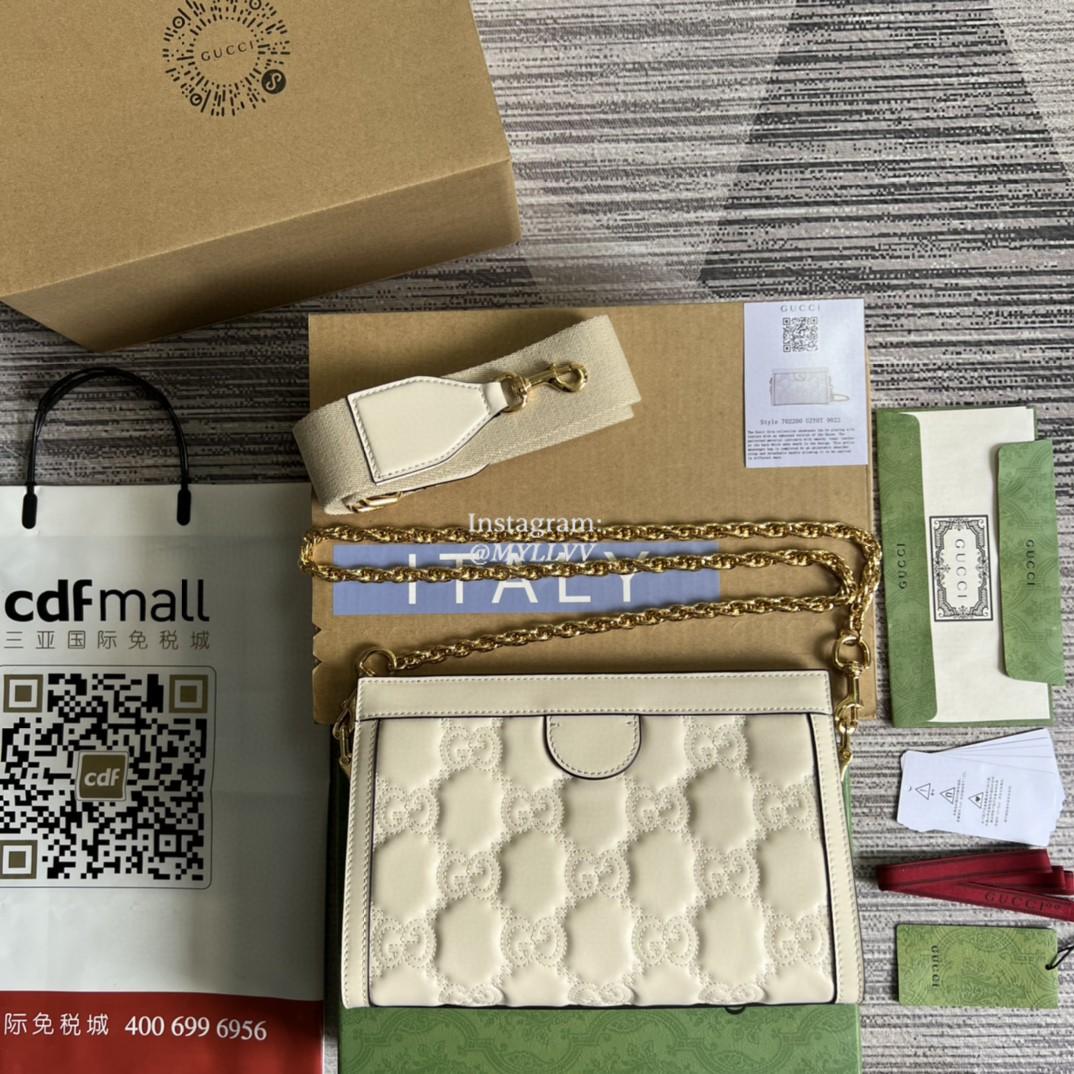 Top Quality Version:MYLLVV » Gucci White GG Matelassé Leather GG Matelassé Leather Small Bag 702200