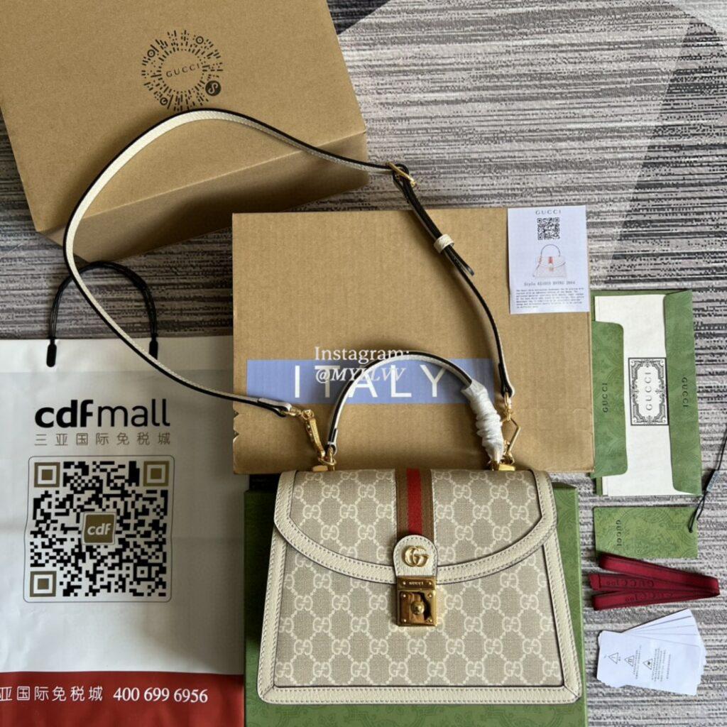 Top Quality Version:MYLLVV » Gucci White GG Supreme Canvas Ophidia Small GG Top Handle Bag 651055