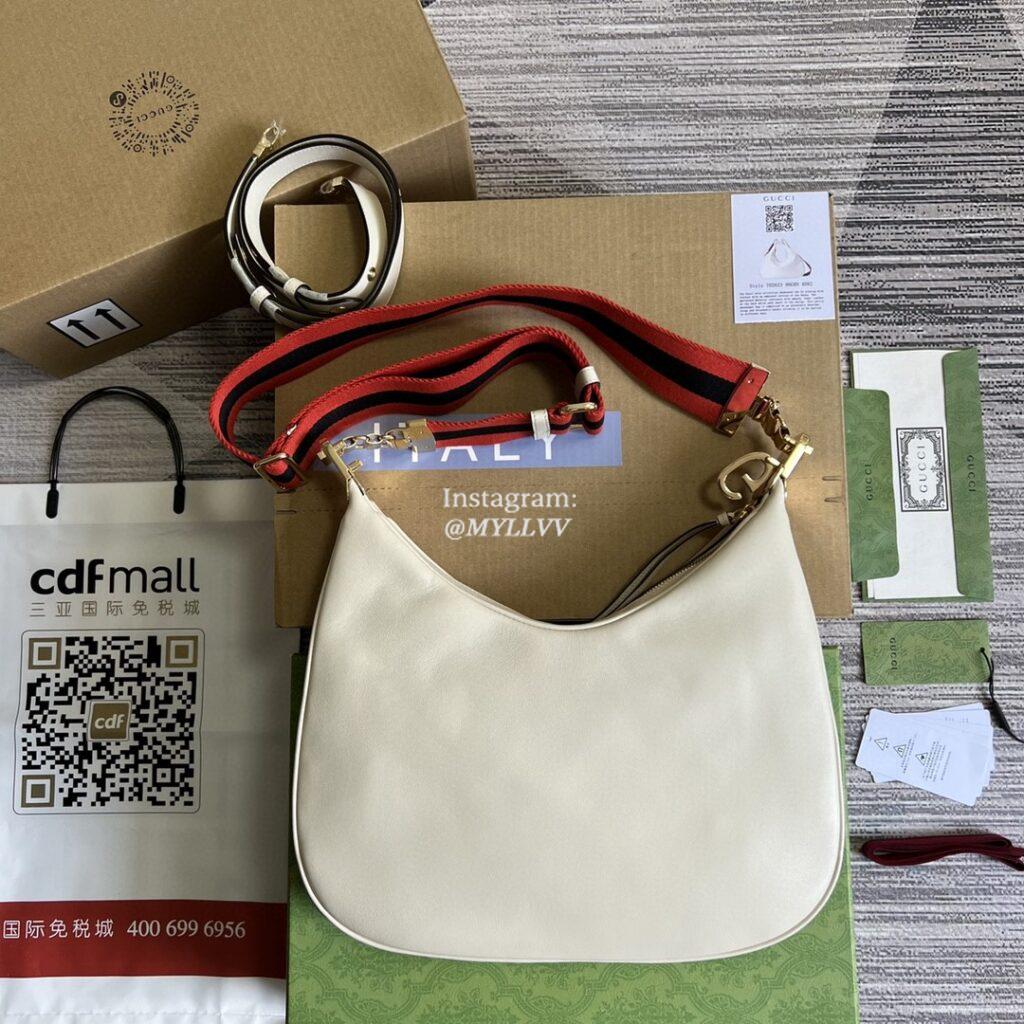 Top Quality Version:MYLLVV » Gucci White Leather Gucci Attache Large Shoulder Bag 702823