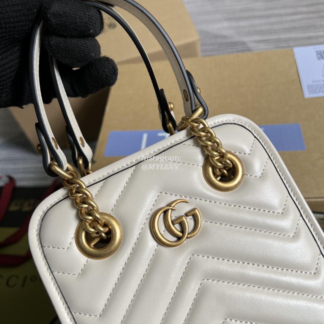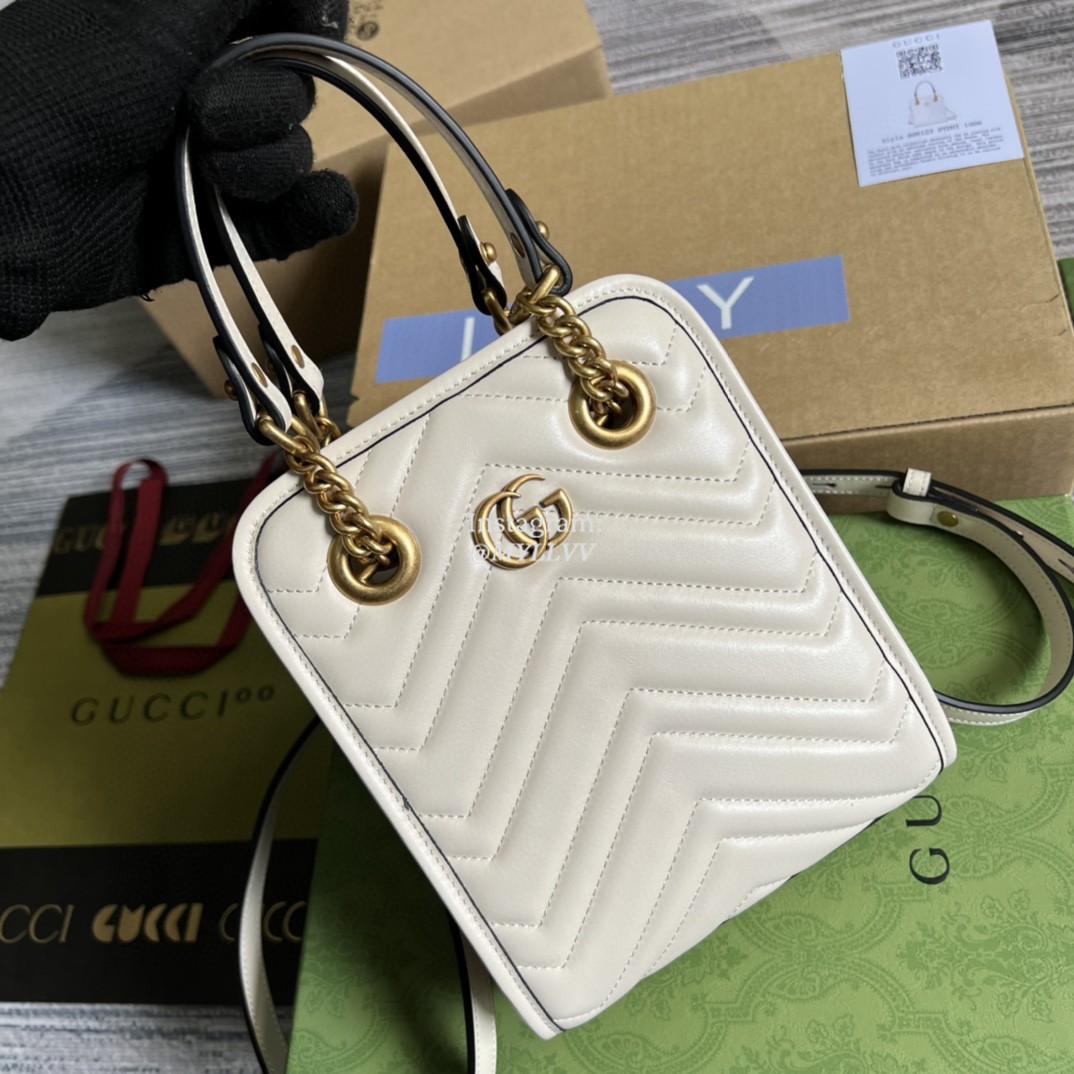 Top Quality Version:MYLLVV » Gucci White Matelassé Chevron Leather GG Marmont Matelassé Mini Bag 696123