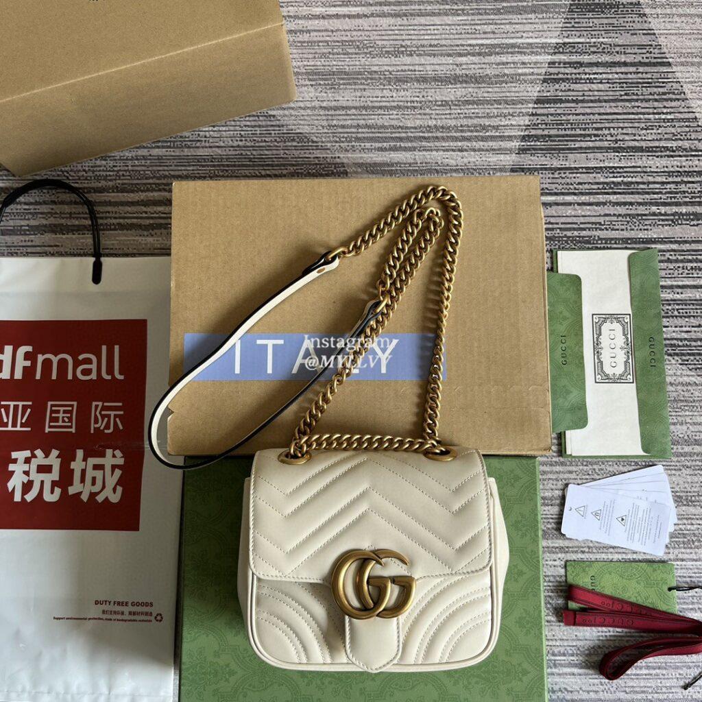 Top Quality Version:MYLLVV » Gucci White Matelassé Chevron Leather GG Marmont Mini Shoulder Bag 739682