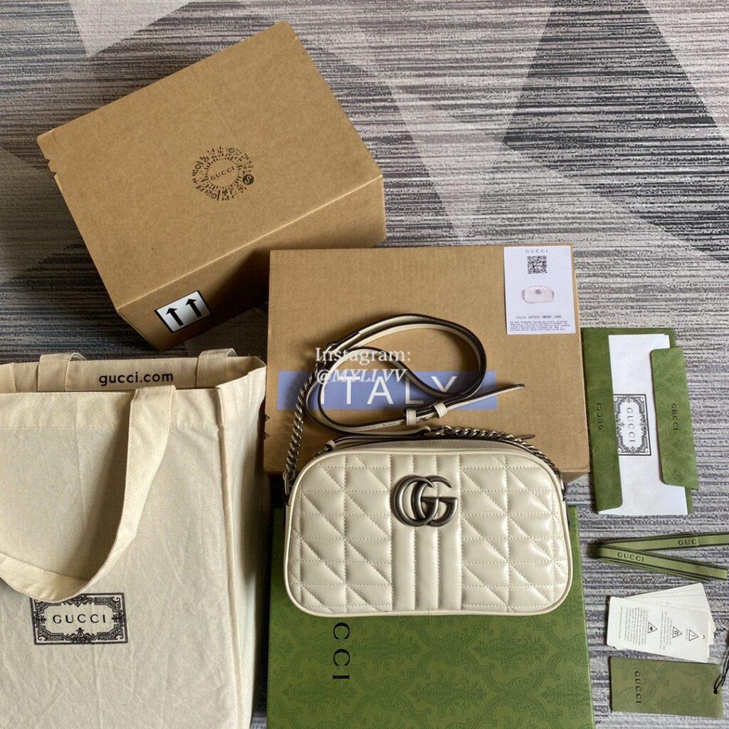 Top Quality Version:MYLLVV » Gucci White Matelassé Leather GG Marmont Small Shoulder Bag 447632