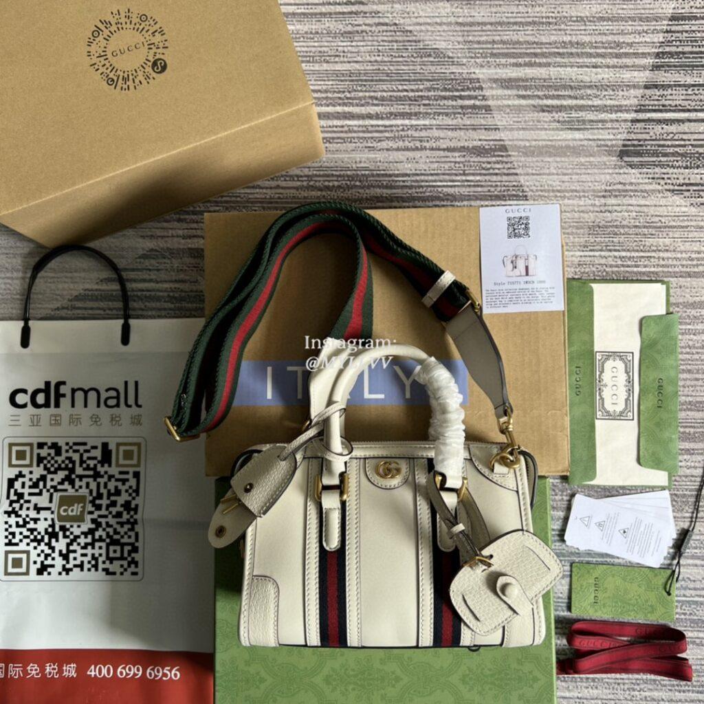 Top Quality Version:MYLLVV » Gucci White Smooth Leather Mini Top Handle Bag With Double G 715771