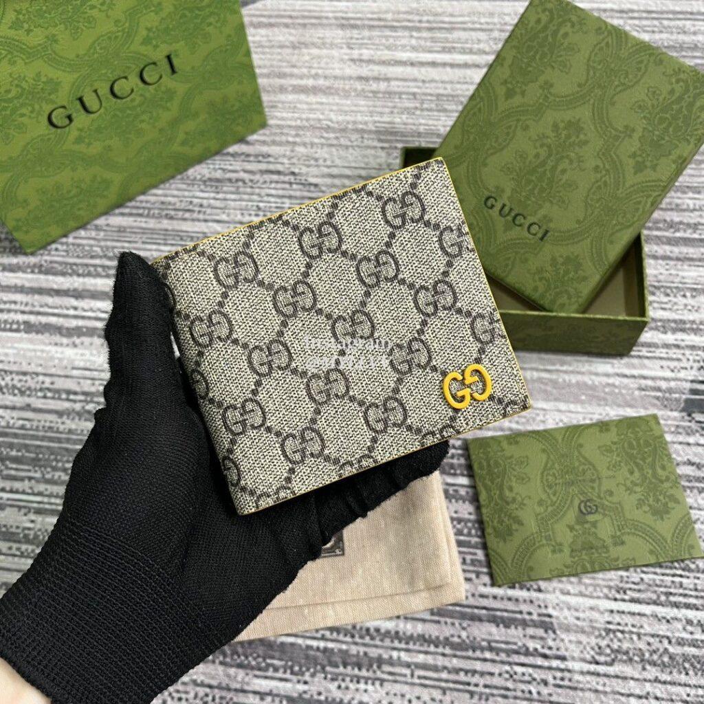 This double fold wallet is a masterpiece of the 2025 early autumn series. This item is crafted with GG Supreme canvas craftsmanship, featuring contrasting inner layers and adorned with ceramic effect GG details.