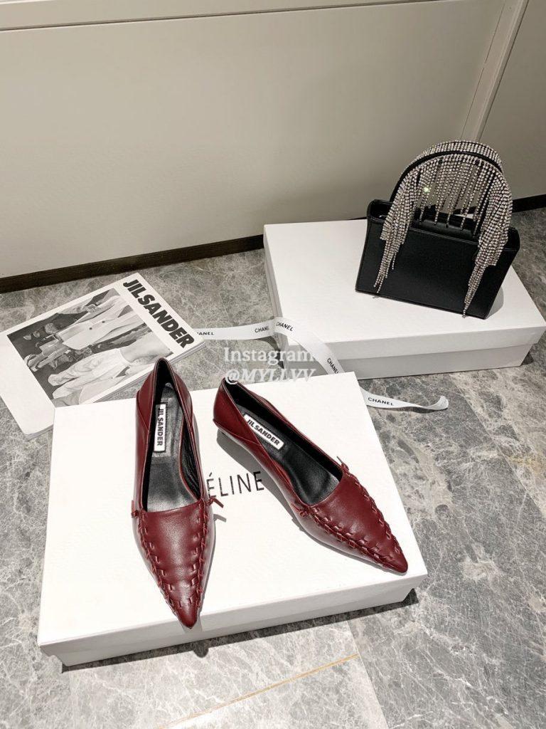Top Quality Version:MYLLVV » Jil Sander 2021 early spring new hand-woven Lambskin cat heel mid-heel shoes (Burgundy)