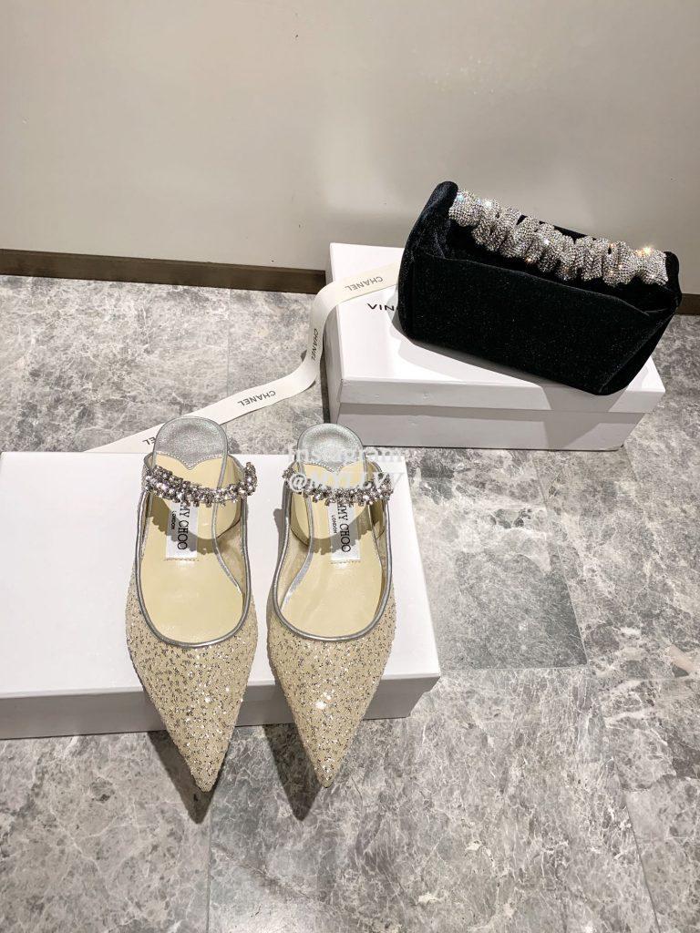 Top Quality Version:MYLLVV » Jimmychoo 2021 new sequined mesh rhinestone flat sandals 1.5cm