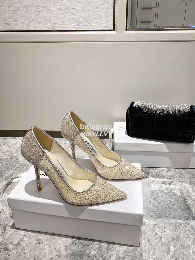 Top Quality Version:MYLLVV » Jimmychoo 2021 new sequins mesh rhinestone high heels 9.5cm