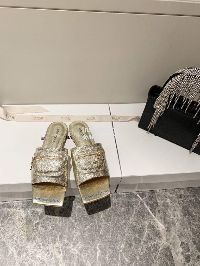 Top Quality Version:MYLLVV » Jimmychoo 2021 spring and summer new fashionable pocket zipper flat slippers (Gold)