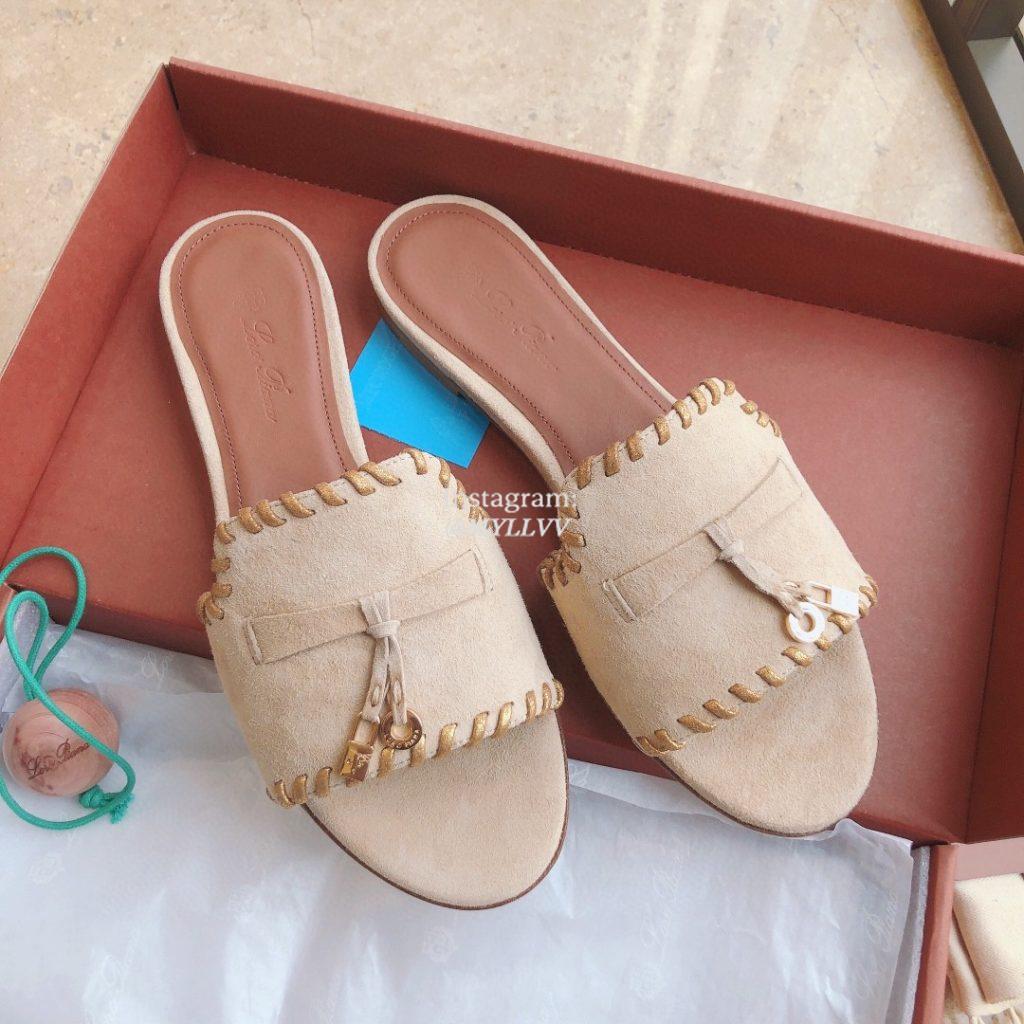 Top Quality Version:MYLLVV » Loro Piana LP Summer Charms Walk Suede Classic Fish Mouth Slippers Nude