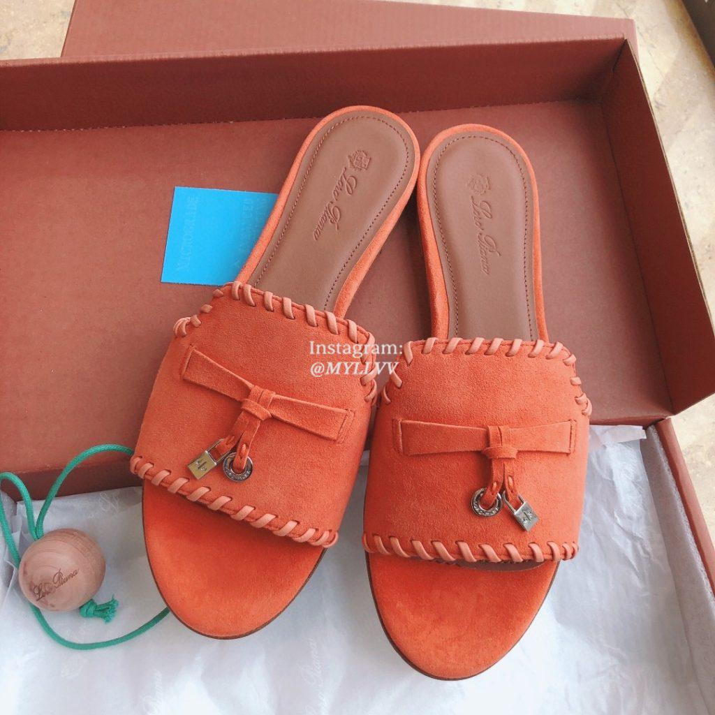 Top Quality Version:MYLLVV » Loro Piana LP Summer Charms Walk Suede Classic Fish Mouth Slippers Orange