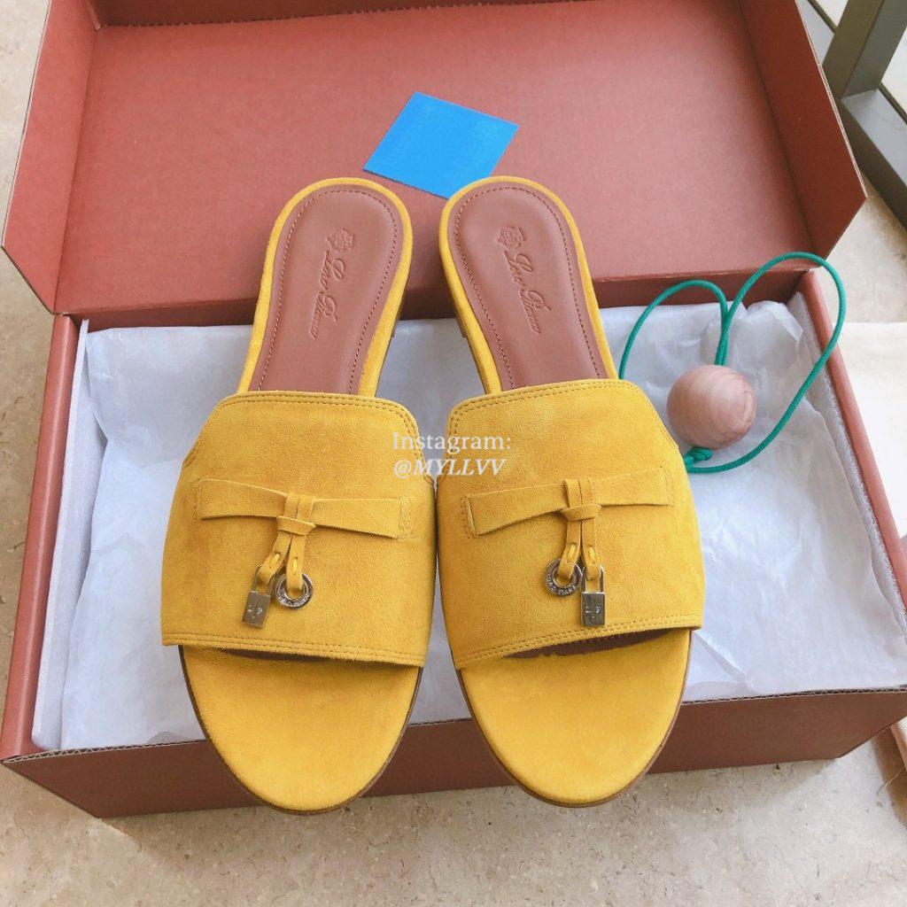 Top Quality Version:MYLLVV » Loro Piana LP Summer Charms Walk Suede Classic Fish Mouth Slippers Yellow