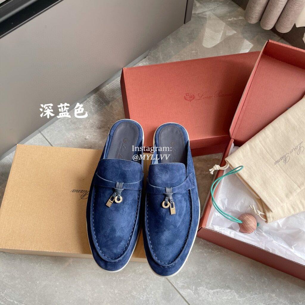 Top Quality Version:MYLLVV » Loro Piana LP Summer Charms Walk Suede Classic Half Slippers For Women Dark Blue