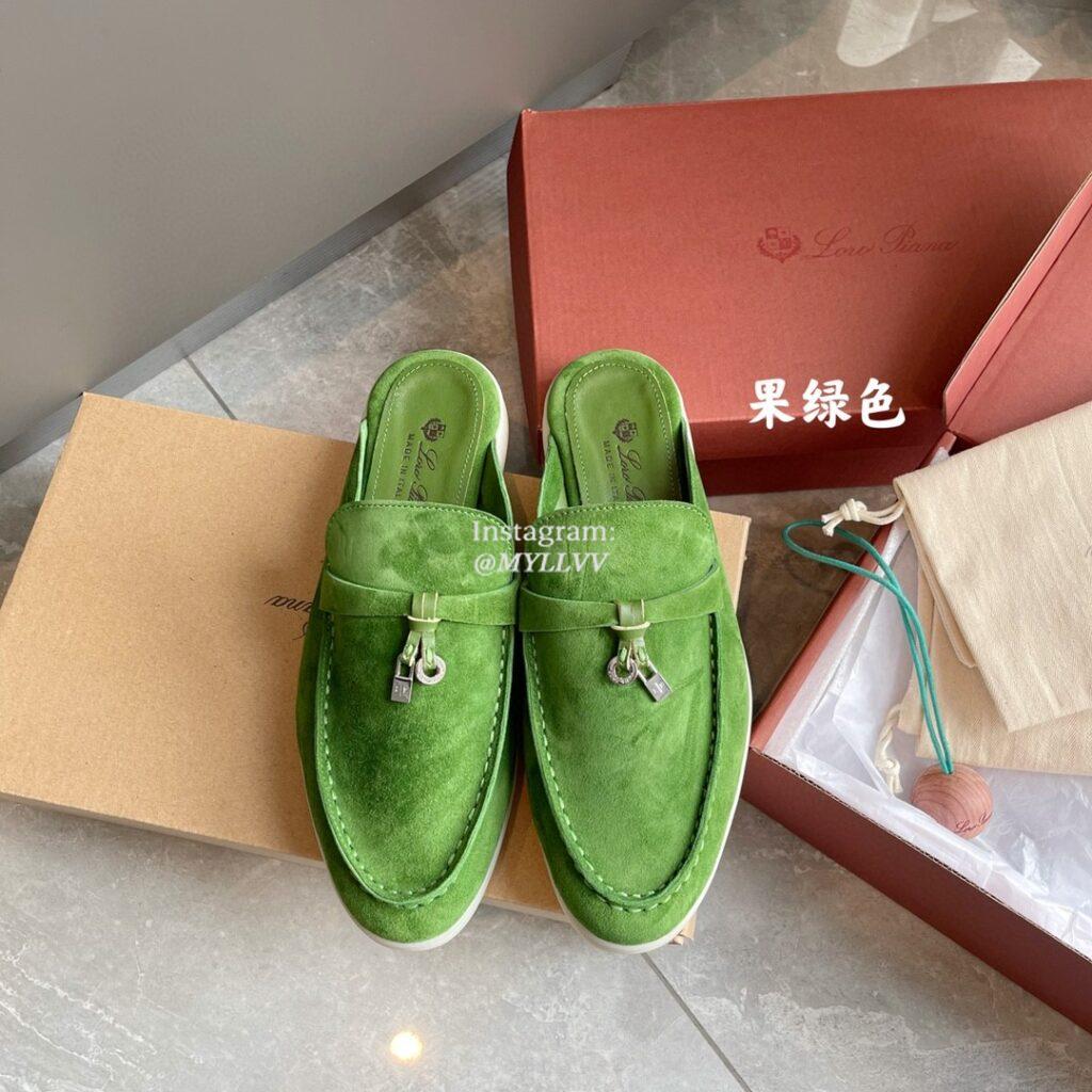 Top Quality Version:MYLLVV » Loro Piana LP Summer Charms Walk Suede Classic Half Slippers For Women Fruit Green