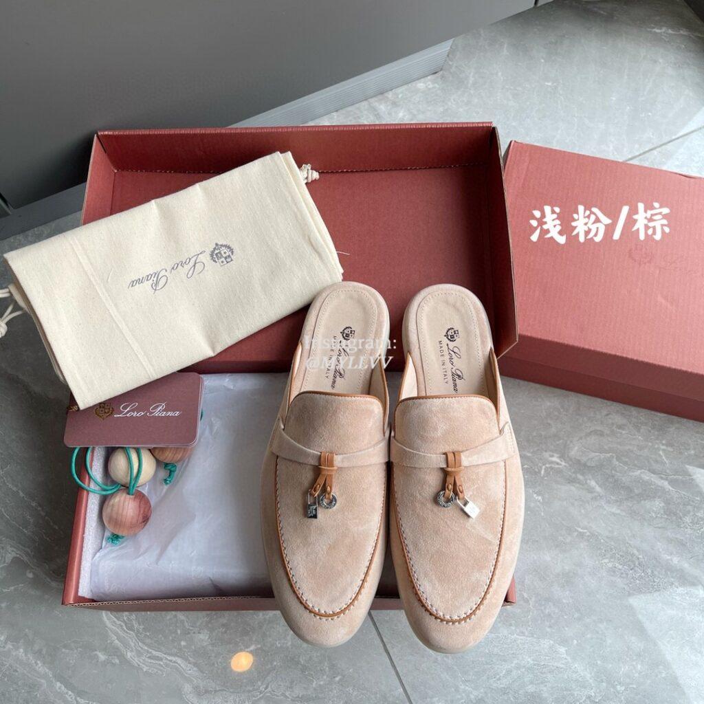 Top Quality Version:MYLLVV » Loro Piana LP Summer Charms Walk Suede Classic Half Slippers For Women Light Pink/Brown