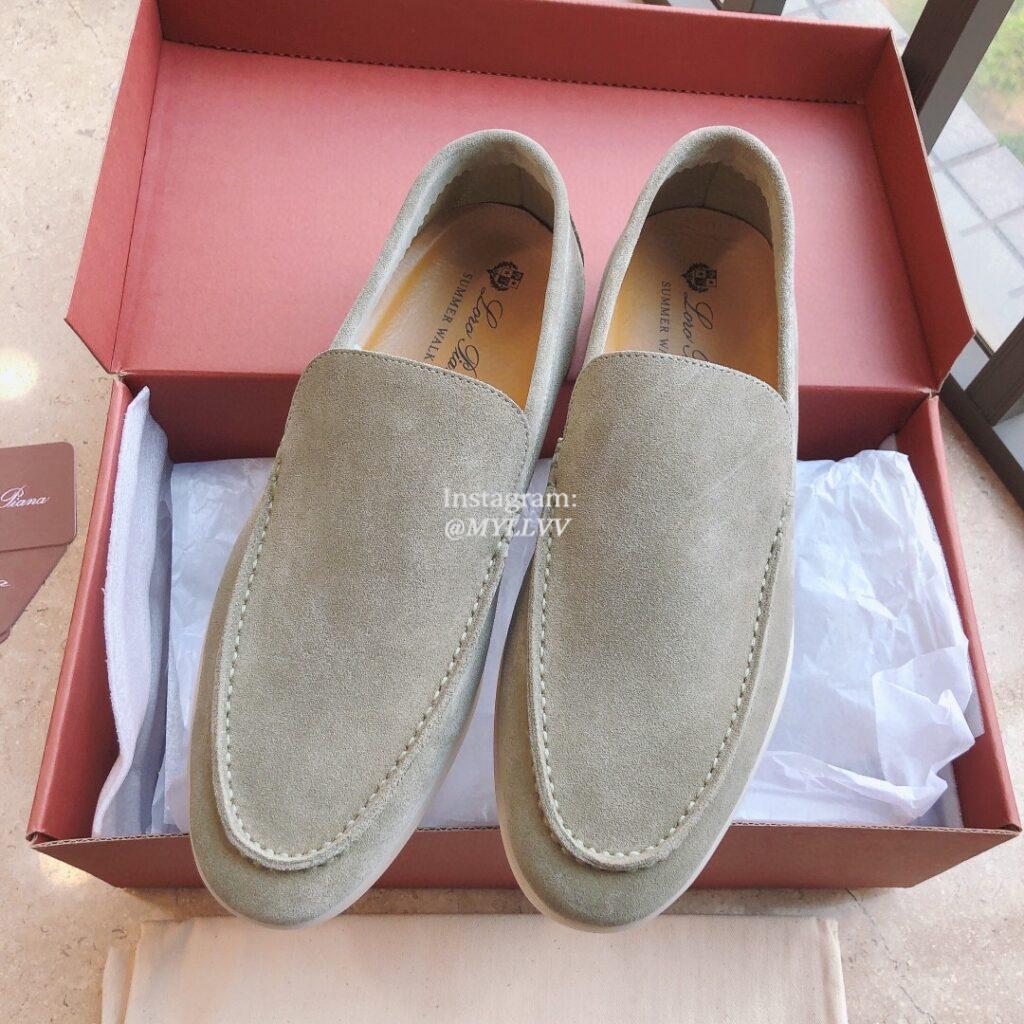 Loro Piana LP Summer Charms Walk Suede Couples Classic All Seasons Loafers For Men Grey Green