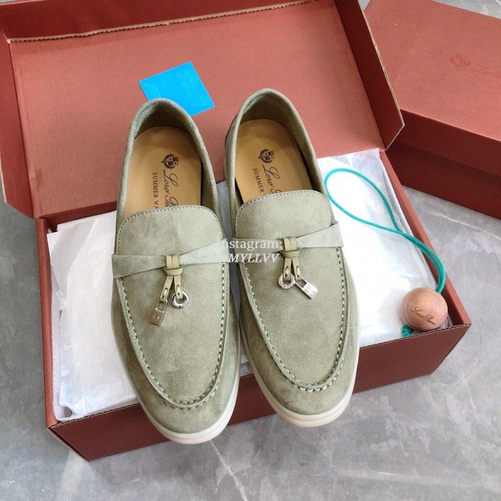 Top Quality Version:MYLLVV » Loro Piana LP Summer Charms Walk Suede Couples Classic All Seasons Loafers For Women Green