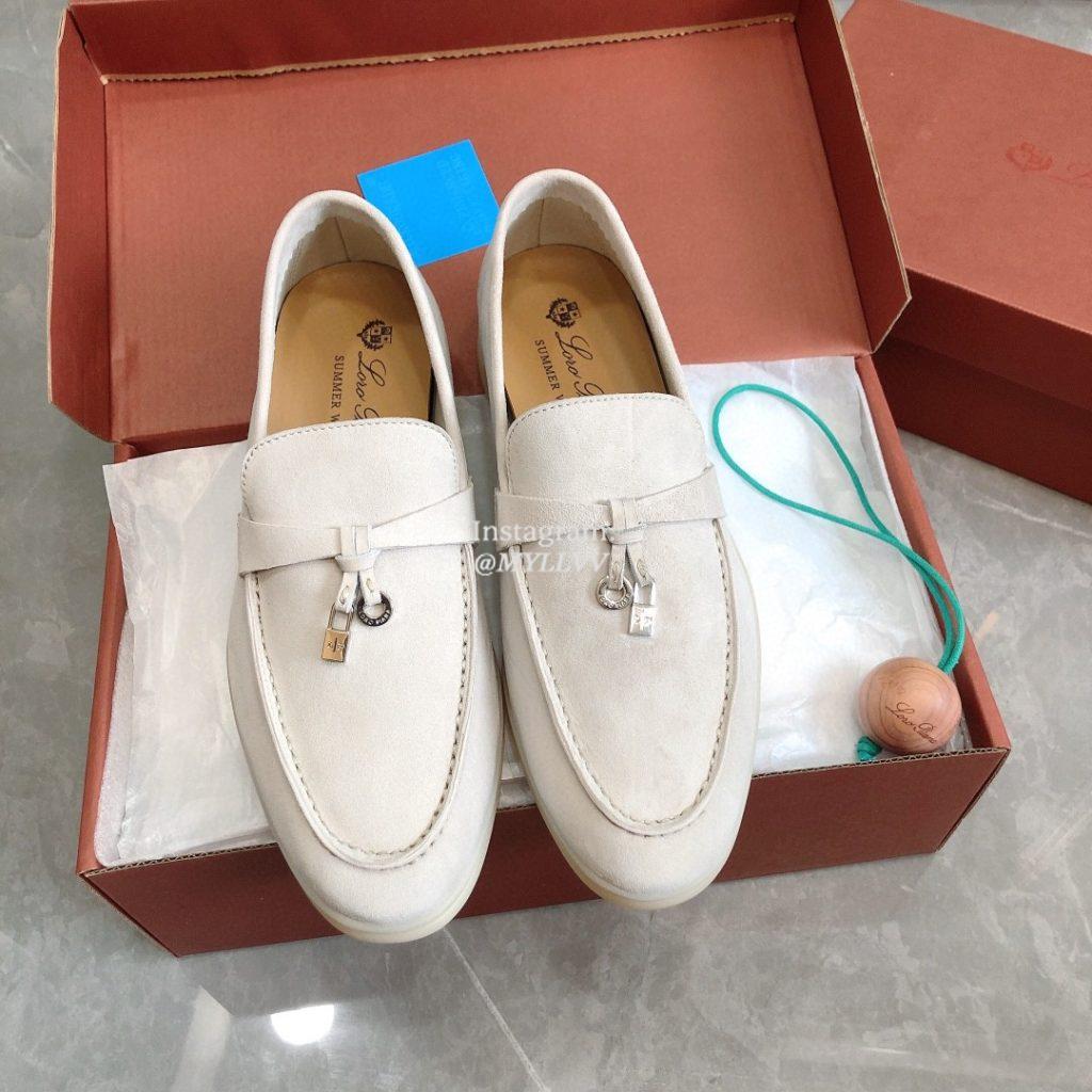 Top Quality Version:MYLLVV » Loro Piana LP Summer Charms Walk Suede Couples Classic All Seasons Loafers For Women Grey/White