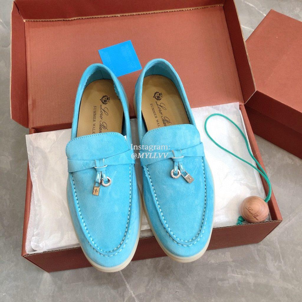 Top Quality Version:MYLLVV » Loro Piana LP Summer Charms Walk Suede Couples Classic All Seasons Loafers For Women Lake Blue