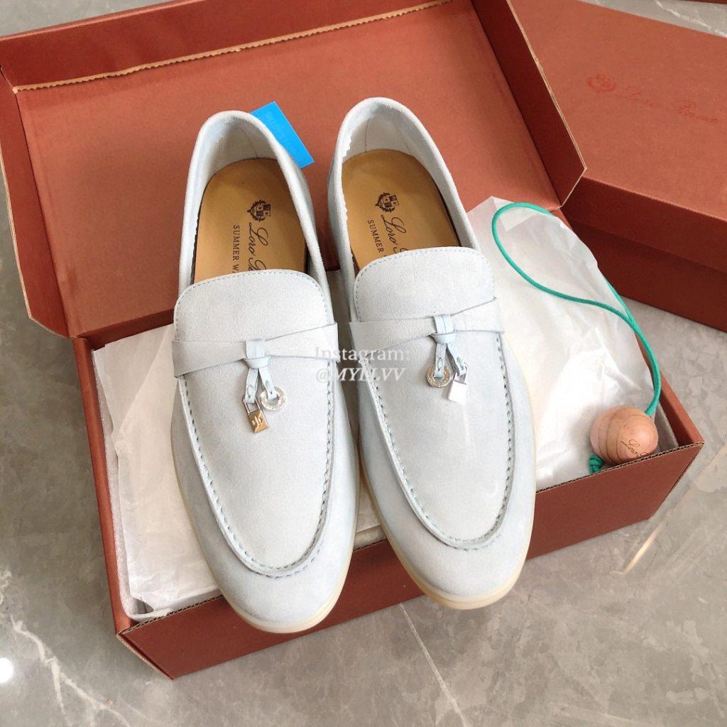 Top Quality Version:MYLLVV » Loro Piana LP Summer Charms Walk Suede Couples Classic All Seasons Loafers For Women Light Blue