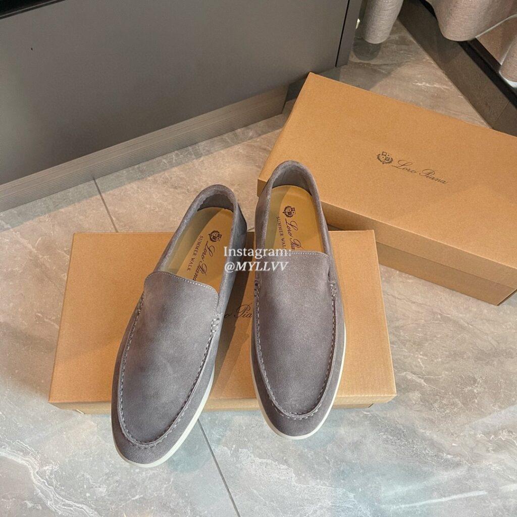 Top Quality Version:MYLLVV » Loro Piana LP Summer Charms Walk Suede Low Top Loafers Shoes For Men Grey