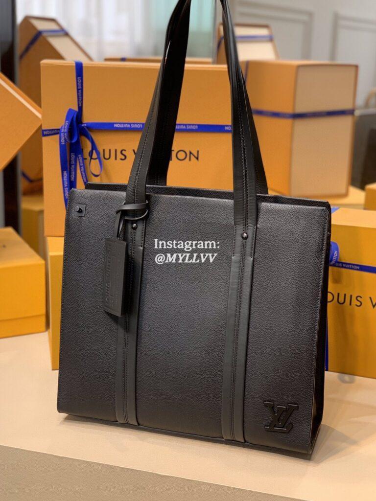 Styled in soft, finely grained black calf leather, the new LV Aerogram Tote is a practical and elegant outsized bag. Its minimalist design is sure to appeal to the fashion-conscious man who appreciates subtle signature touches like the leather tag and LV initials in black metal. And it has a lockable compartment to keep a laptop and other valuables secure.