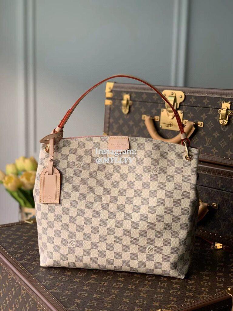 Top Quality Version:MYLLVV » Louis Vuitton Damier Azur Coated Canvas Graceful PM Hobo Bag N42249