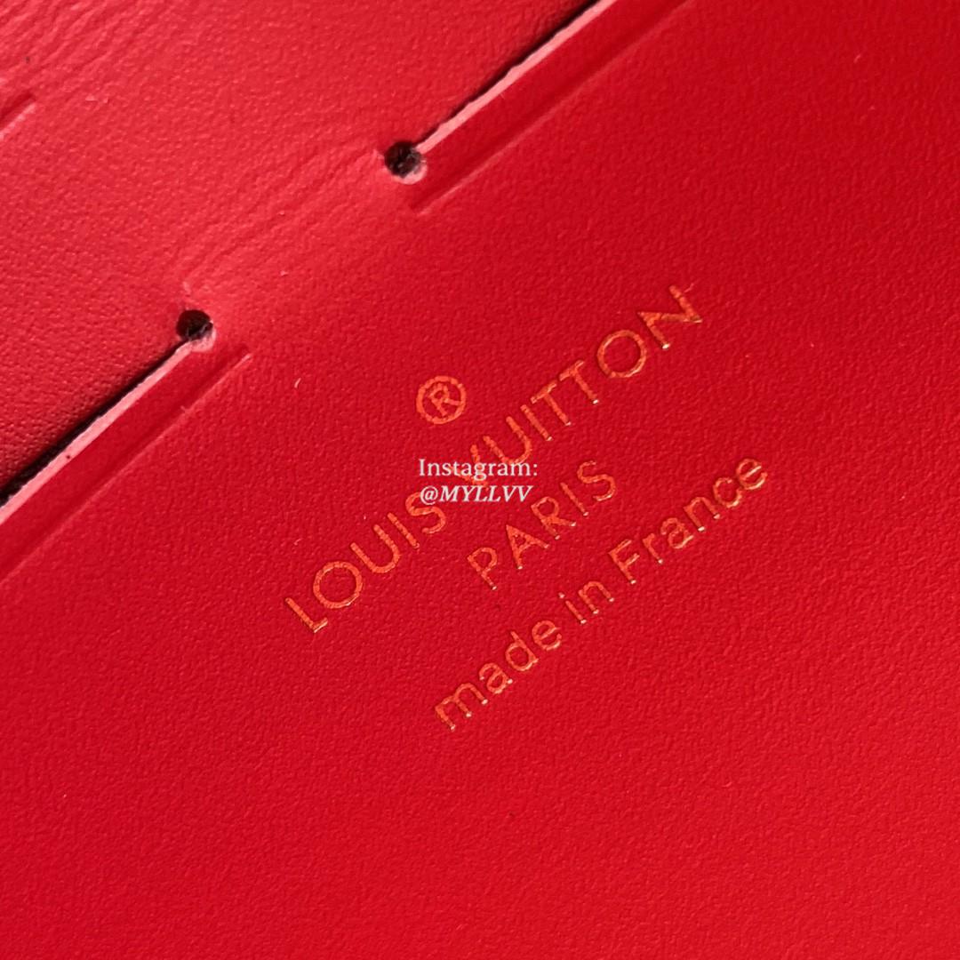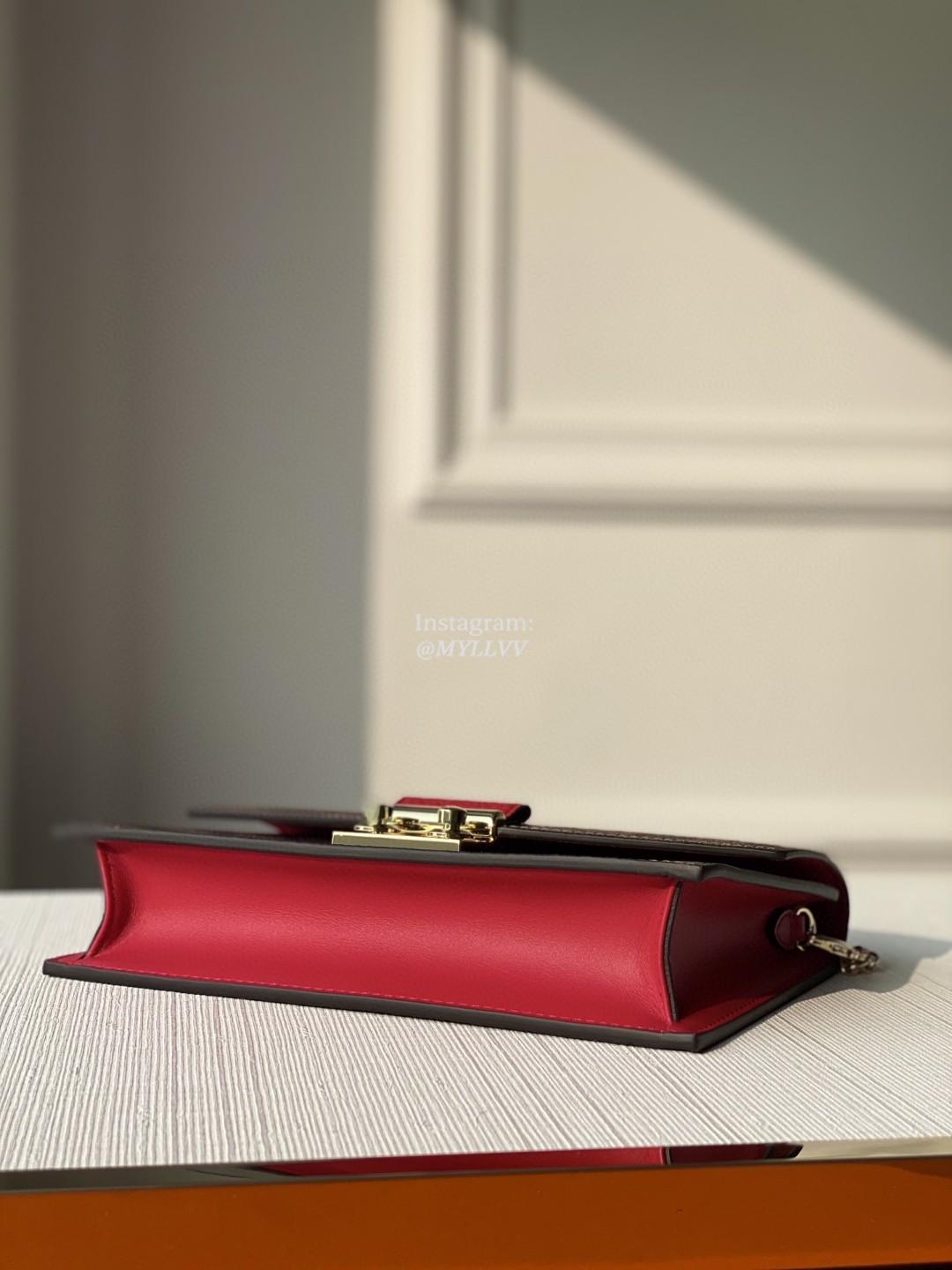 Inspired by the Croisette handbag, the Croisette chain wallet revisits the key codes of its design: the combination of Damier Ebene canvas and colored leather, and the S-lock, historically used on Louis Vuitton trunks. This model features a removable chain, which enables it to be carried on the shoulder or in hand.