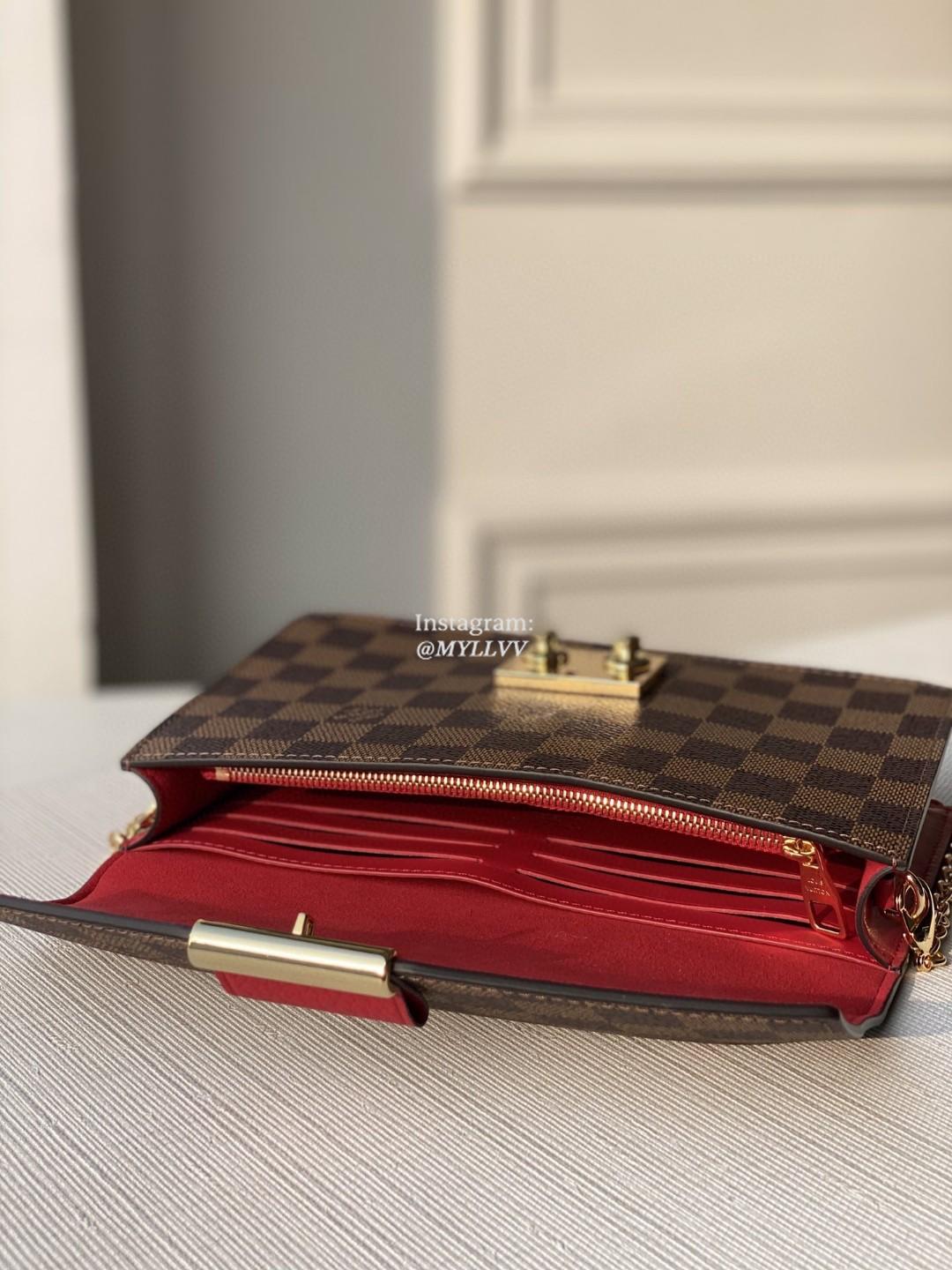 Top Quality Version:MYLLVV » Louis Vuitton Damier Ebene Coated Canvas Croisette Chain Wallet N60288