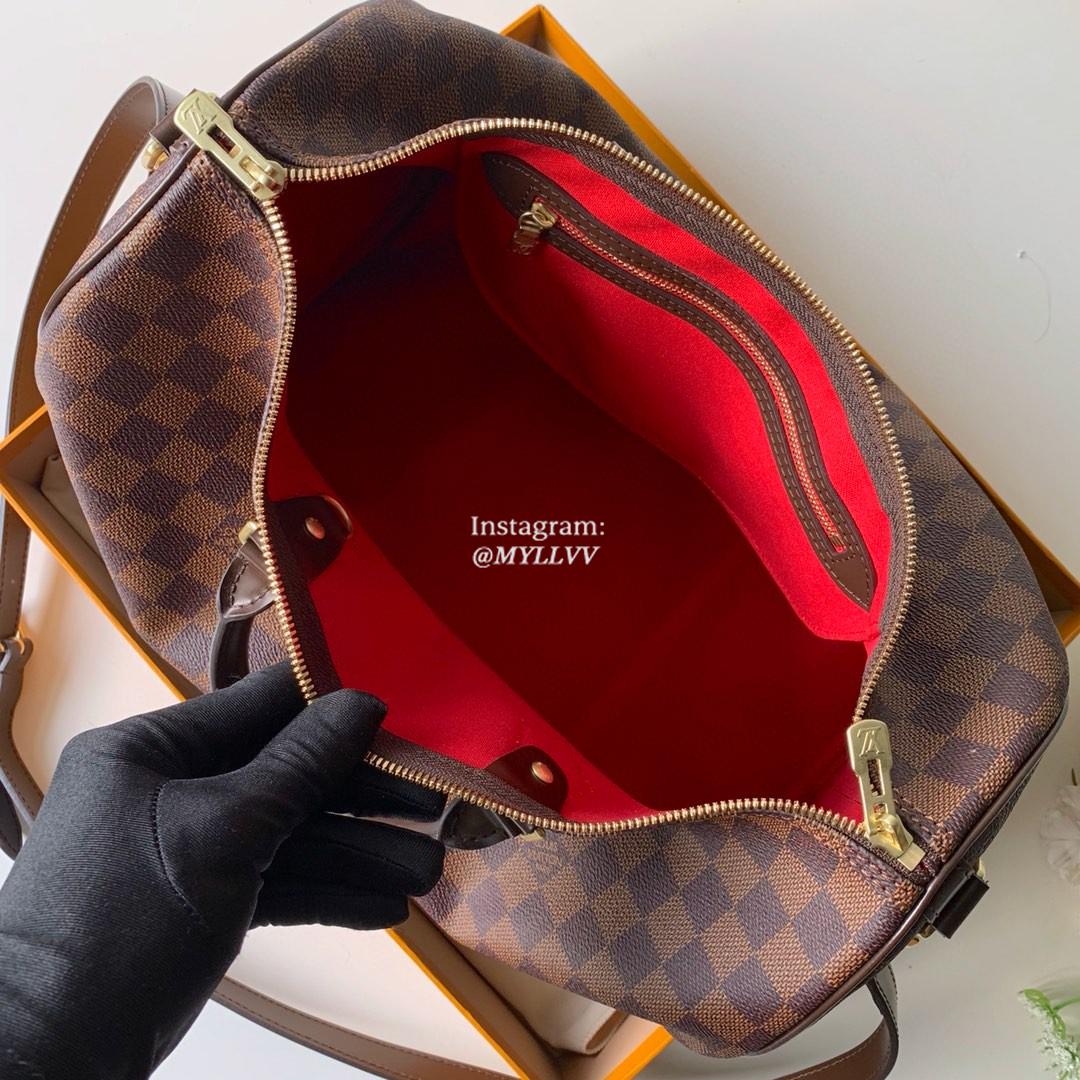 Top Quality Version:MYLLVV » Louis Vuitton Damier Ebene Coated Canvas Speedy Bandoulière 35 Handbag N41366