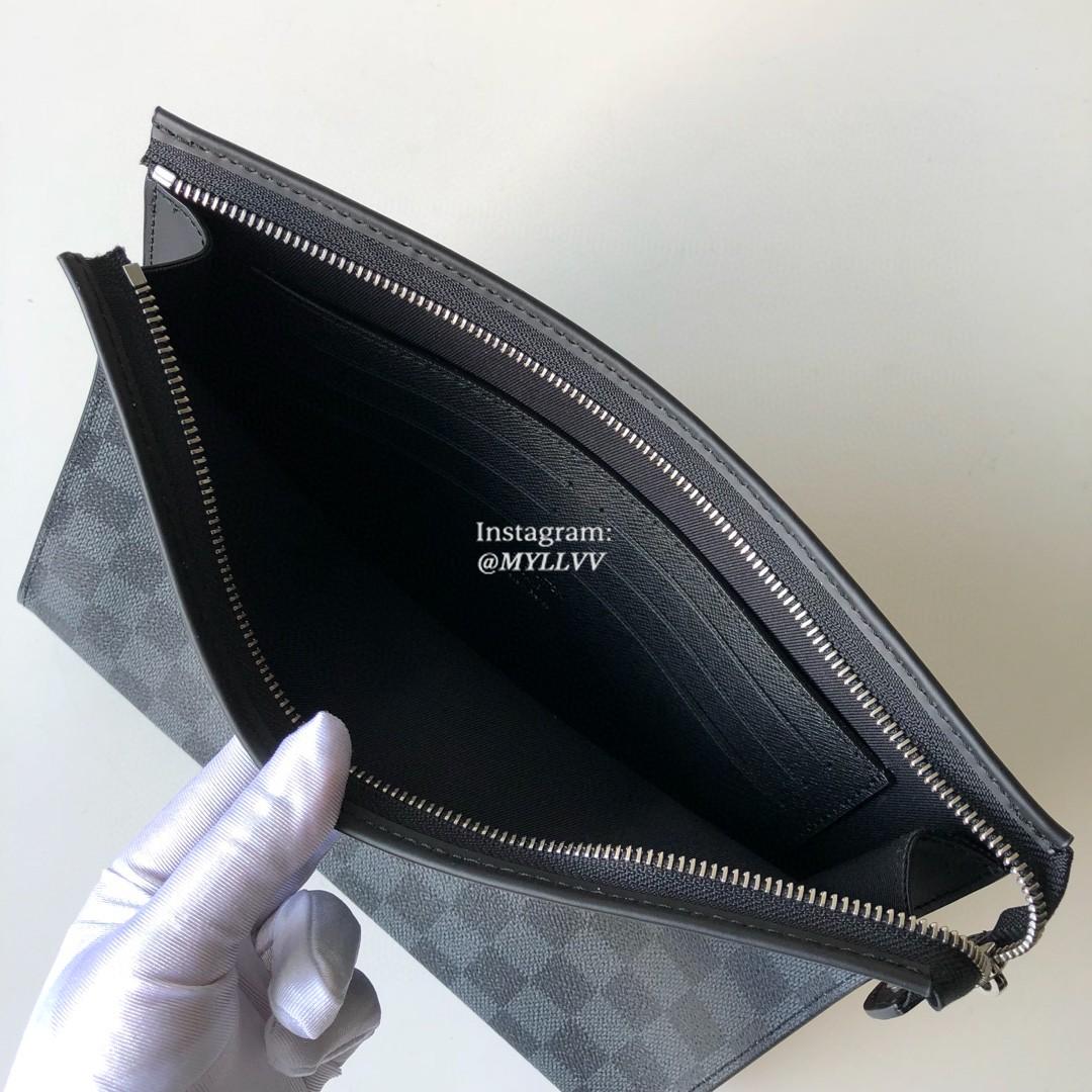 Compact, versatile and totally on-trend, this Pochette Voyage MM in Damier Graphite coated canvas can be slipped into a bag as a travel pouch or hand-carried for a trendier look. The spacious interior and gussets mean easy access to all your essentials.