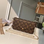 This Trio Messenger is made from Damier Graphite canvas twisted with a print of a herd of wild animals. Closer inspection divulges that the animals are made of passport-style stamps. The Trio is three bags in one: a roomy main compartment with a zipper, a detachable small pouch, and a coin purse attached to the adjustable strap.