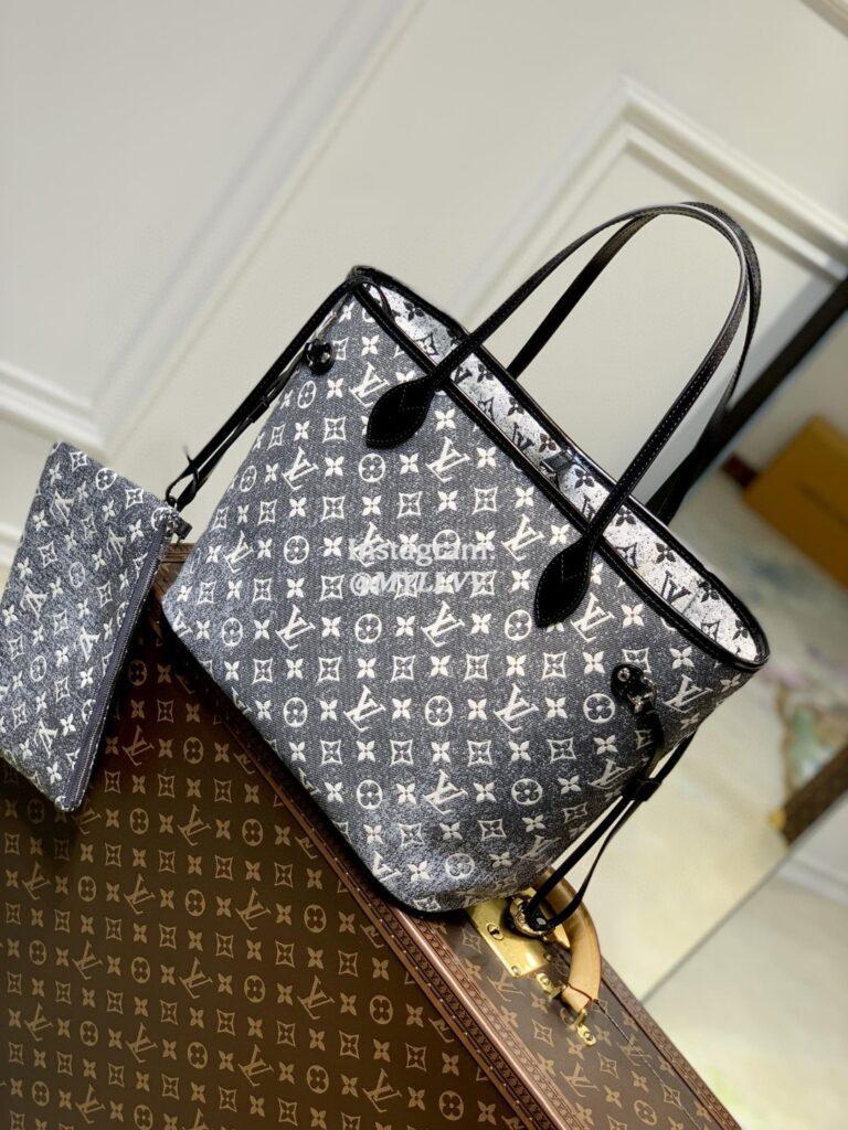 Top Quality Version:MYLLVV » Louis Vuitton Denim Textile Jacquard Neverfull MM Tote Bag M21465