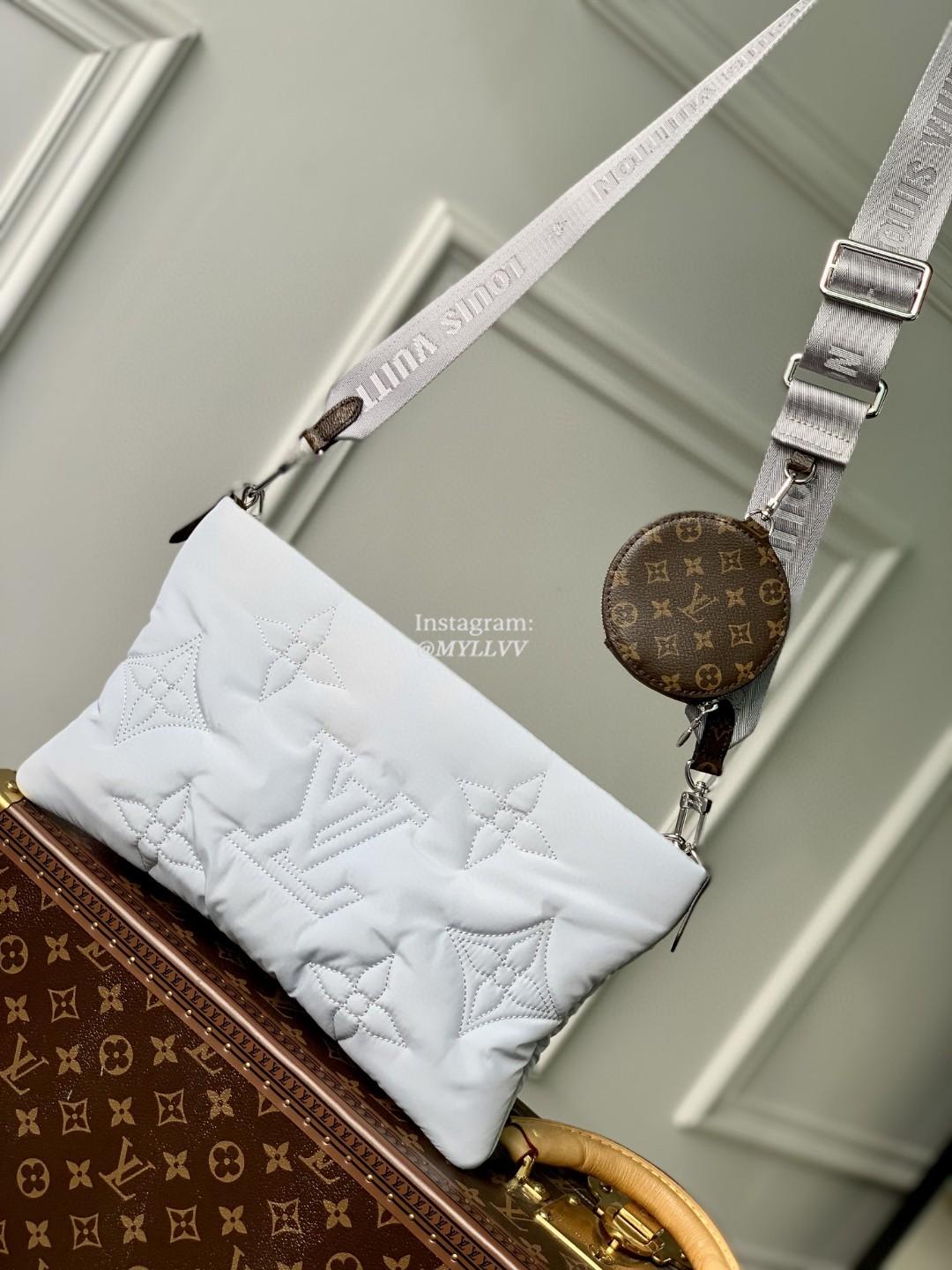 The hybrid Maxi Multi Pochette Accessoires handbag comes in eco-responsible Econyl regenerated nylon. The exterior is embroidered with a Monogram pattern, giving it a comfy padded aspect, and lined with Mini-Monogram printed Econyl. This cross-body bag boasts multiple pockets and compartments and combines a Pochette Accessoires, a Mini Pochette Accessoires and a Round Coin Purse.