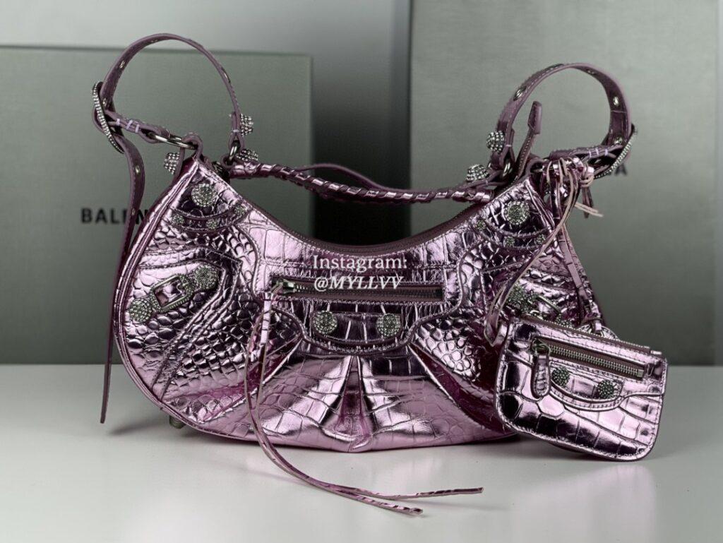 The LV Pont 9 Soft PM is a rounded handbag made from grained calfskin with smooth cowhide lining in a contrasting color and a wide two-color strap decorated with Monogram Flowers. The two sides of the strap are woven separately and then stitched together by hand. The new LV Circle signs this bag.