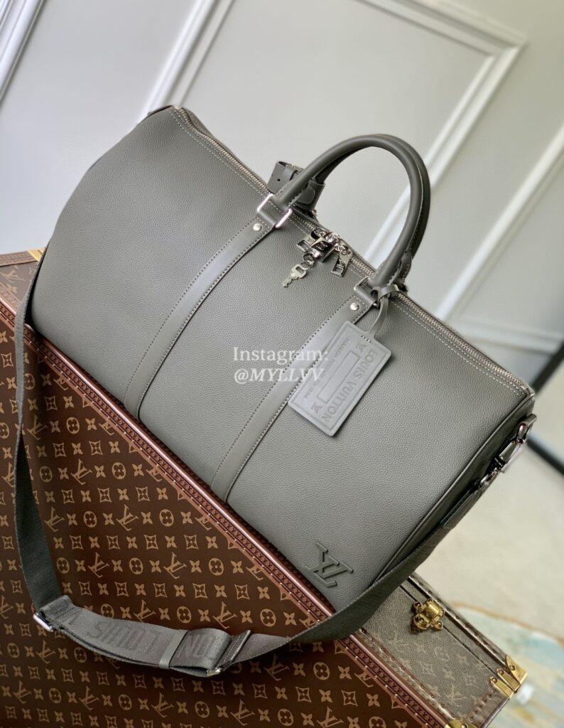 Top Quality Version:MYLLVV » Louis Vuitton Grey Aerogram Cowhide Leather Keepall Bandoulière 50 M21420