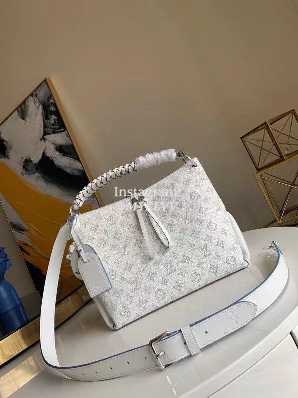 It is made of Monogram perforated calfskin, and then hand dyed for woven leather handle. The leather zipper head and large LV letters show the brand style, and the detachable wide leather shoulder strap makes the soft design comfortable.