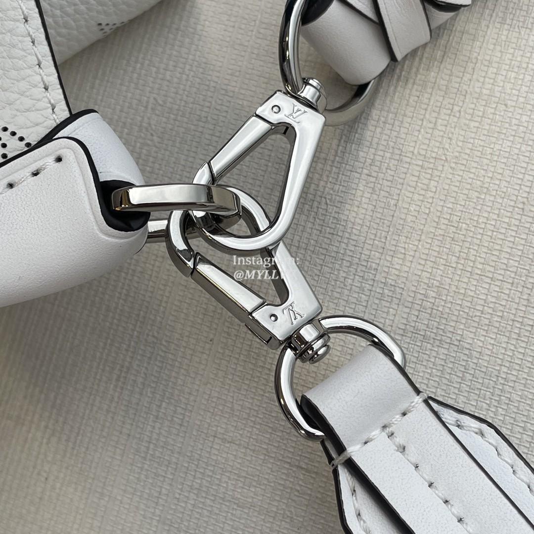 The Muria bucket bag is made from Mahina calf, a perforated leather with a discreet Monogram motif. Supple and sophisticated, it is a pleasure to carry, either by the braided top handle or the long leather strap, which adjusts for short- and long-shoulder or hands-free cross-body wear. Crafted signature details include a name tag and keybell in smooth calfskin.
