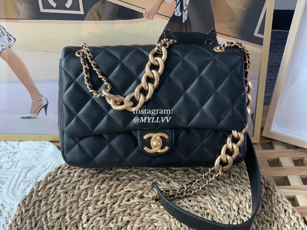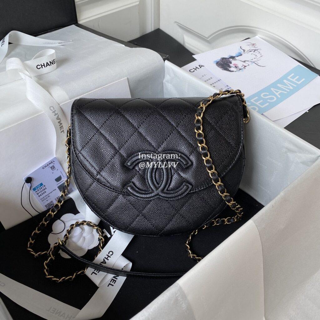 Chanel Diamond Plaid Caviar Cowhide Saddle Bag Black With Gold AS3919