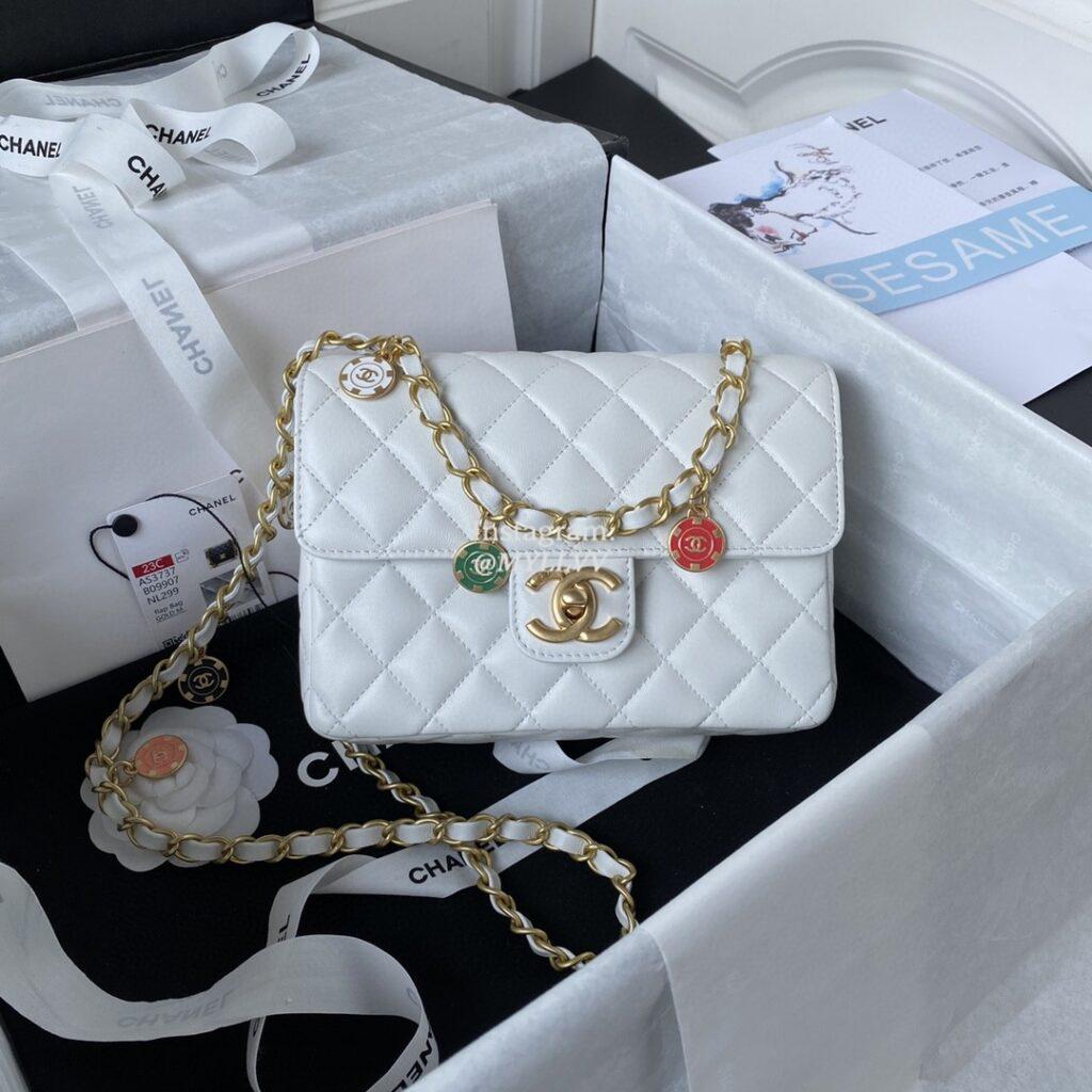 Chanel Diamond Plaid Caviar Cowhide Saddle Bag Mint Green With Gold AS3919