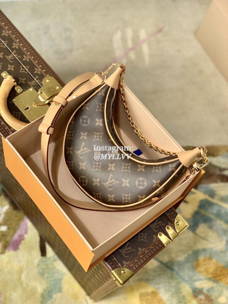 Created by Nicolas Ghesquière for the Cruise 2022 Collection, the Loop handbag is a half-moon baguette, inspired by the Croissant bag from the House archives. It has a body-friendly, compact shape and a chain for shoulder carry, as well as a cross-body leather strap. The front zip pocket closes with a LV Circle zip pull.