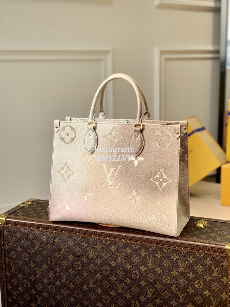 Ready for Spring: this OnTheGo MM tote in Monogram canvas will enliven the season’s silhouettes with its stylish new gradient colorway. A roomy, well-organized carryall for office or off-duty pursuits, the bag is fitted with both top Toron handles and long leather shoulder straps, for a variety of comfortable carry styles.